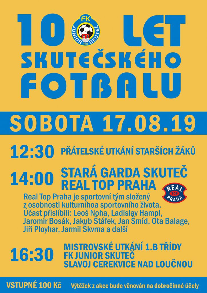 V rámci 100 let skutečského fotbalu je připraveno několik utkání. Vrcholem bude utkání staré gardy Skuteč proti týmu Real TOP Praha, který je složen ze známých osobností společenského a sportovního života. Účast přislíbili: Leoš Noha, Jaromír Bosák, Ladislav Hampl, Jakub Štáfek, Jan Šmíd, Ota Balage, Jiří Ployhar, Jarmil Škvrna a další. Poté bude následovat mistrovské utkání FK Junior Skuteč proti týmu Slavoj Cerekvice nad Loučnou.