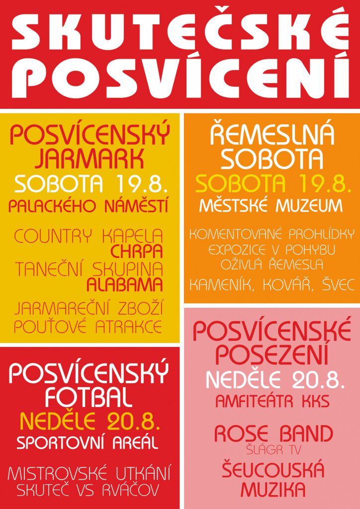 O víkendu 19. a 20. srpna proběhne Skutečské posvícení. V sobotu se můžete těšit na tradiční Posvícenský jarmark a Řemeslnou sobotu. Neděle bude patřit Posvícenskému posezení a fotbalu.