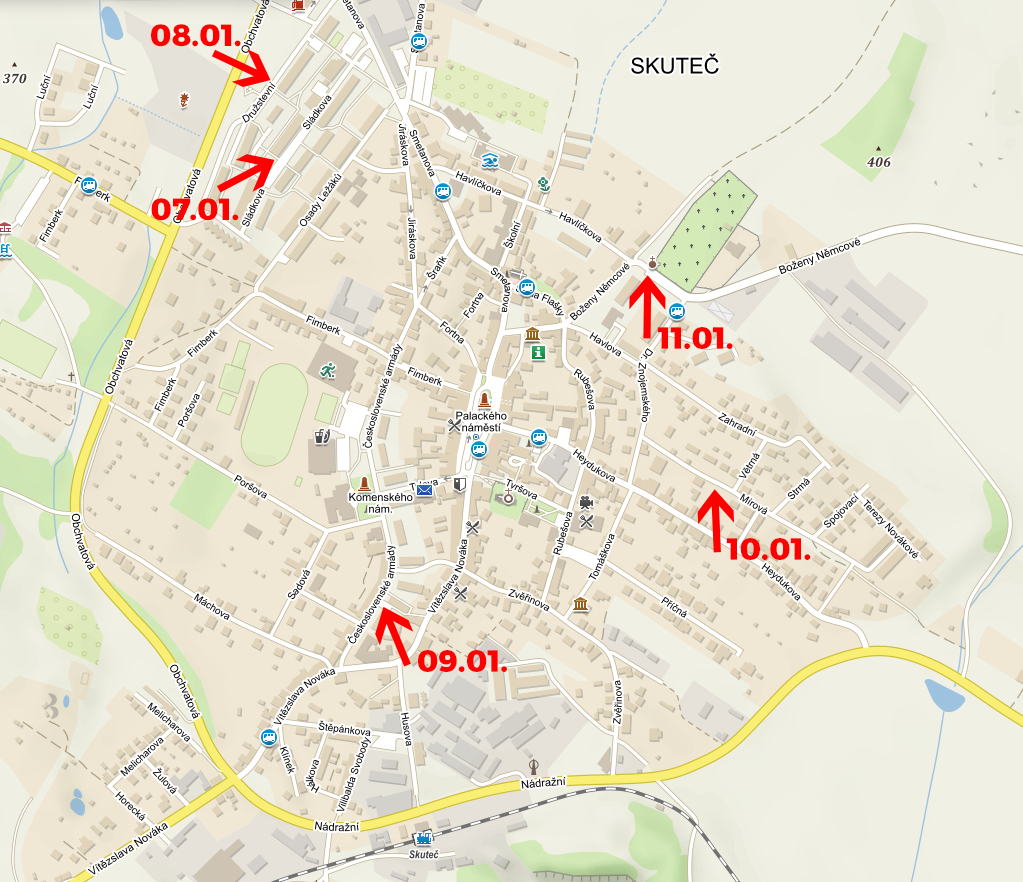 čtvrtek 08.01. - sídliště, ulice Družstevní u č. p. 905