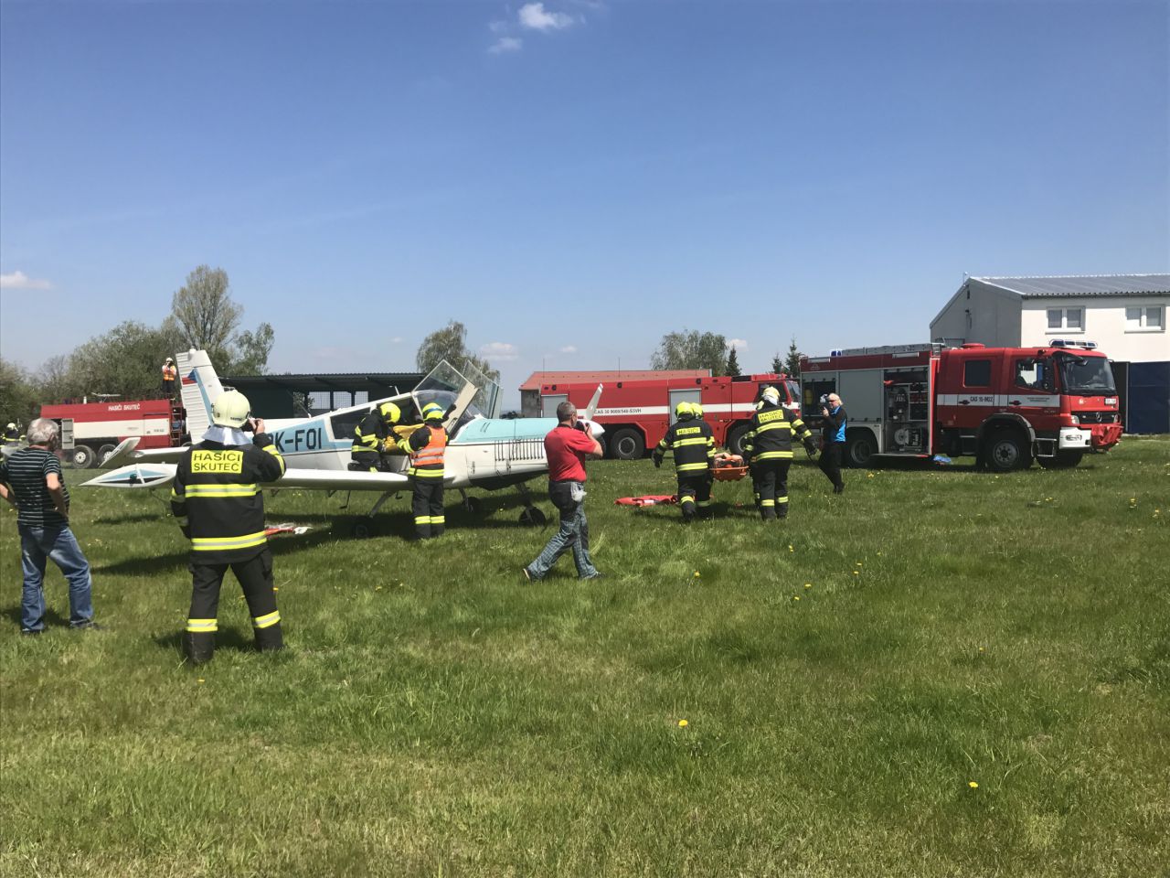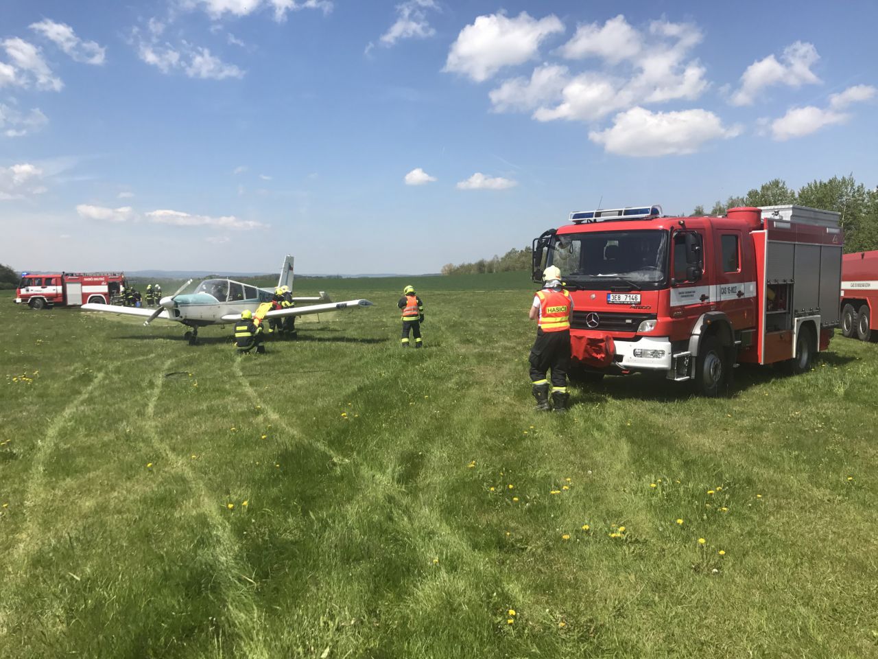 Pilot letadla, které zasáhl požár motoru, stihl pomocí vysílačky celou událost nahlásit a přistát. Uvnitř se společně s ním nacházely další dvě osoby.