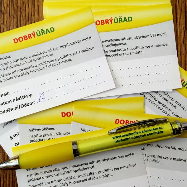 Tento systém řízení kvality spustíme v prosinci. V jednotlivých kancelářích budou k dispozici lístky, na nichž občan, který měl jednání na úřadě, uvede svoji e-mailovou adresu a tento lístek následně vhodí do boxu označeného DOBRÝ ÚŘAD umístěného v přízemí budovy. Během následujícího dne bude e‑mailem požádán, aby zhodnotil svou zkušenost s úřadem a městem. Odeslat hodnocení je možné do pěti dnů od návštěvy úřadu. Stejně bude celý proces probíhat v Regionálním muzeu a Městské knihovně Skuteč.